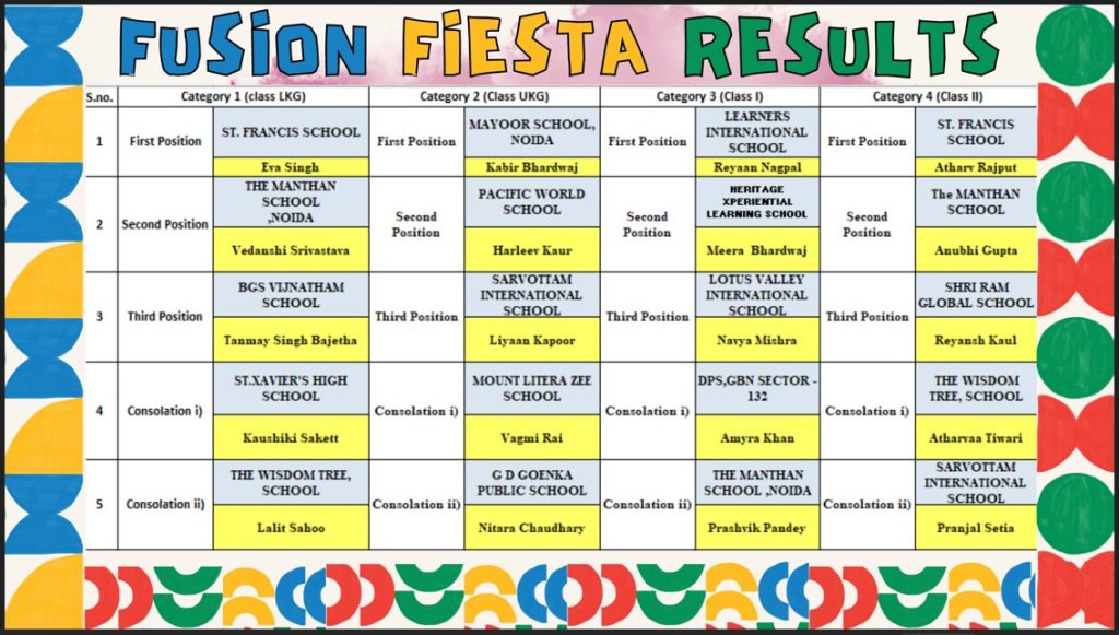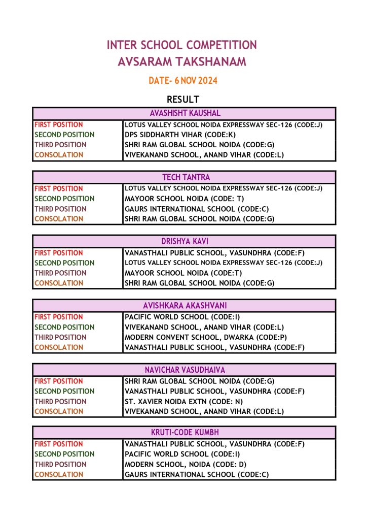 RESULT OF INTER SCHOOL COMPETITION AVSARAM TAKSHANAM