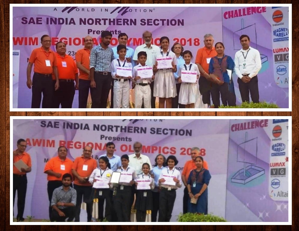 On 23rd Oct two teams of class V and VI went to Maruti Suzuki Training Academy, Gurugram for AWIM Regional Olympics 2018 to participate in Jettoy and Skimmer challenge. Over 40 teams from Delhi zone, Faridabad, Gurgaon, Ghaziabad, Noida participated with zeal in the event.