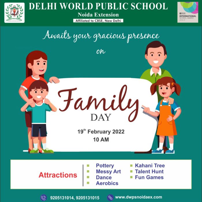“Family is a life jacket in the stormy sea of life” – J.K.Rowling Delhi World Public School,Noida Extension,is going to organise a Family Day on 19th February,2022 to create...